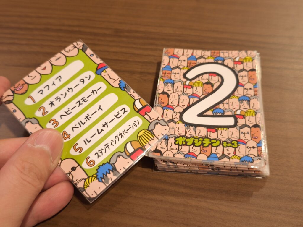 次のカードにジョージの記載があった場合はその番号の言葉を漢字のみでみんなに説明しなければいけない。他にも身振り手振りだけで説明や、単語だけでの説明などいろいろ指令があります。