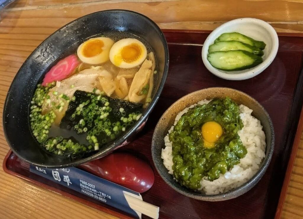 魚介出汁の優しい支那そばに海の幸めかぶ。合うに決まってんじゃん。