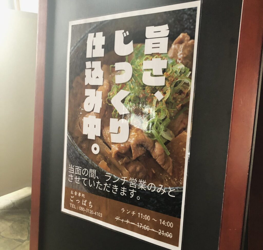 当面の間はランチ営業のみで、営業時間は11:00~14:00までとのこと。