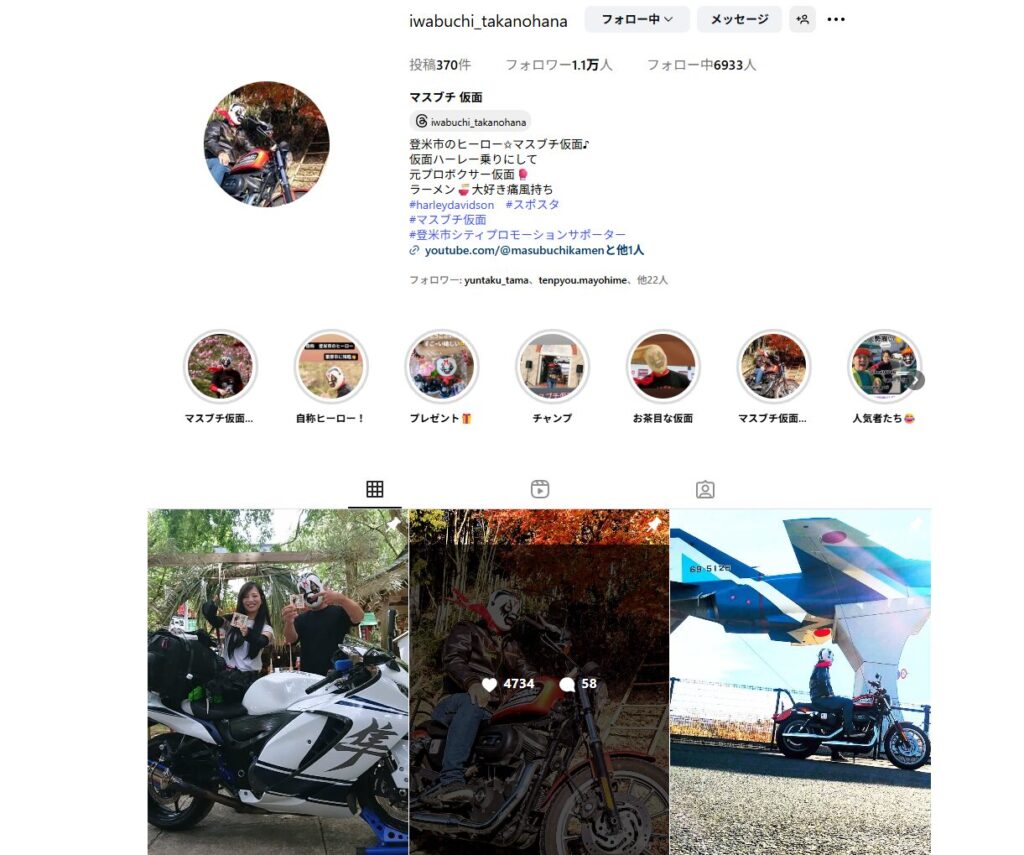 元々バイクが好きで仮面を被ったハーレー乗りって面白そうだな。と思ってSNSを開設したらありがたいことにフォロワーさんも増えてきて…その時に地元の神社で豆まきイベントがあり、そこに参加したのがきっかけでSNSを軸に地元を盛り上げようと思いました。