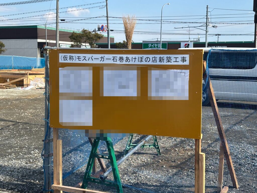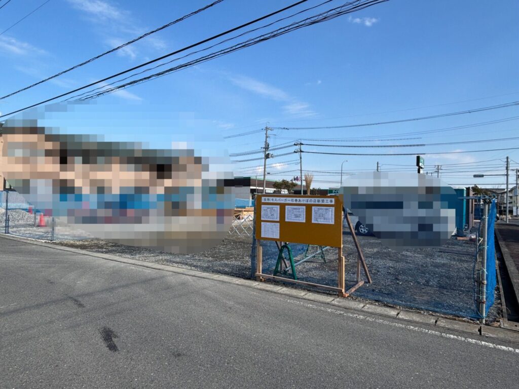 (仮称)モスバーガー石巻あけぼの店がオープンするための工事を現在行っているよう。