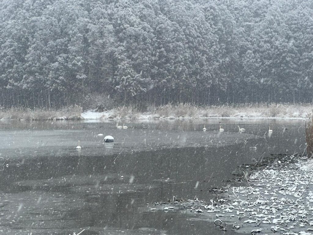 雪の降る相野沼。車のタイヤ跡がついていることを期待するのは確実に間違ってる。そんな沼です。