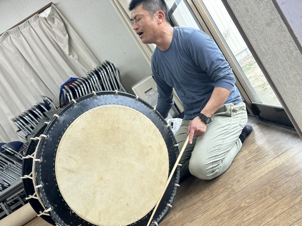 鶏舞を無くすわけにはいくまいと上野目神楽鶏舞伝承クラブというのを立ち上げて、子どもたちに【鶏舞】を教えるおじさん。