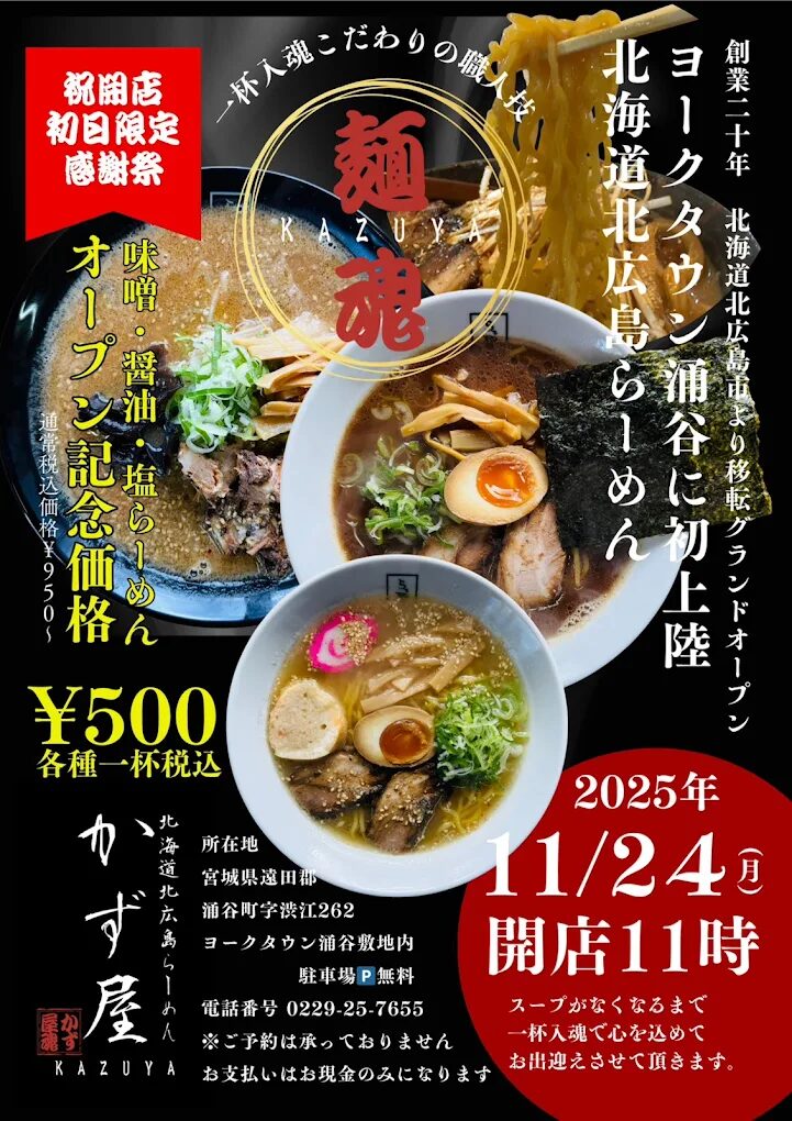 先日11月24日に新しいラーメン店が涌谷町にオープンするぜ!といった記事を書きました。