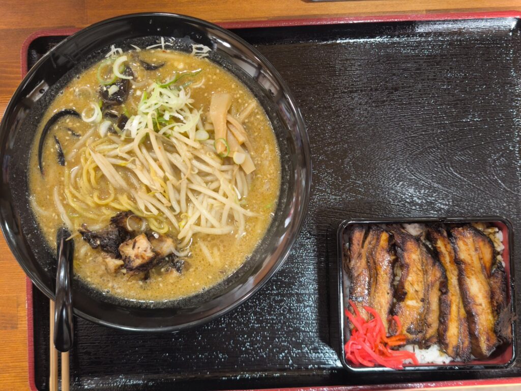 味噌らーめんとチャーシュー丼が人気とのことでそれを両取りできるセットを頼みました。