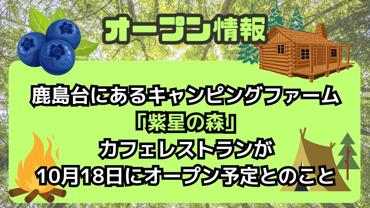 大崎市鹿島台にある「紫星の森」で、10月18日にカフェがオープンするとの情報を見つけました。