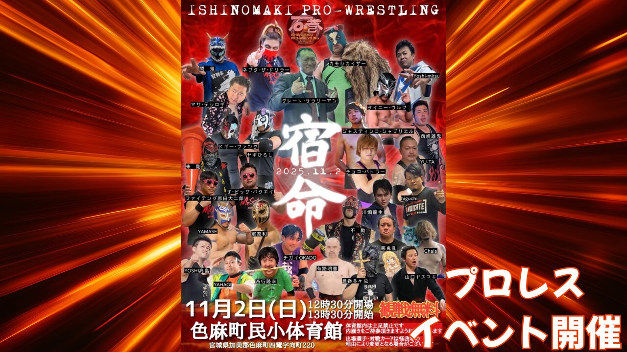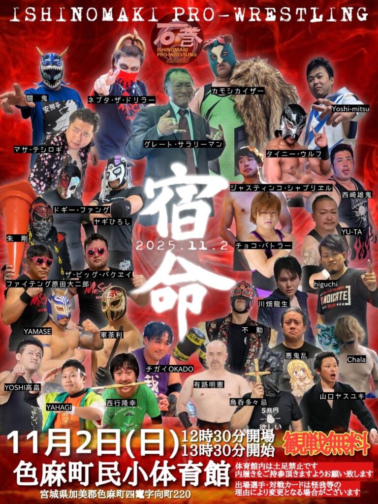 11月2日(日)加美郡色麻町で、石巻プロレス主催のプロレスイベント