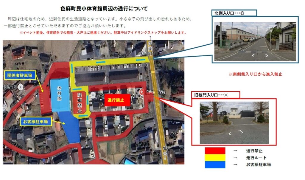 注意点として開催場所は色麻町民体育館ではなく色麻町民小体育館になっています。