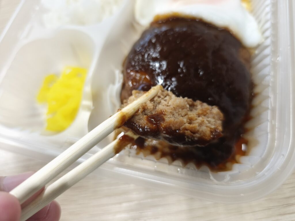 ハンバーグのソースもおいしくてガツガツ白米がいけてしまう。