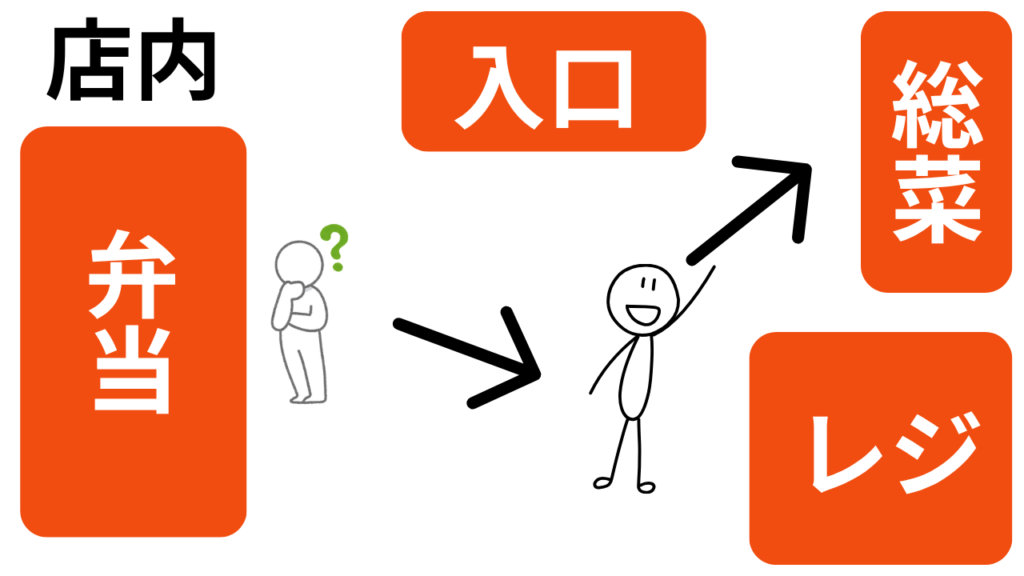 お店の構造的に、お弁当を選んでレジに向かう途中に総菜が目に入るという