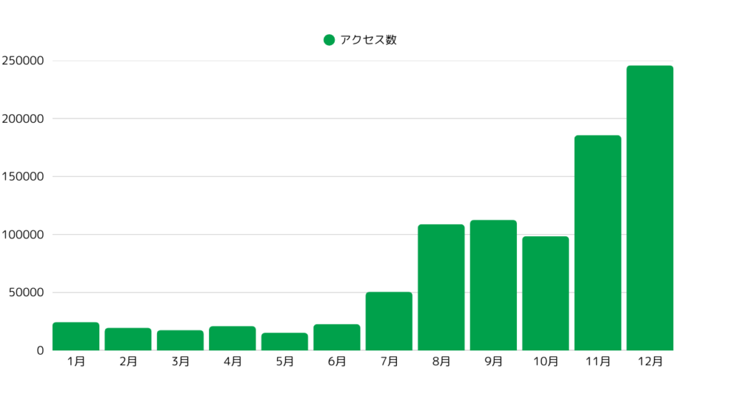 という謎の熱を帯びたミヤキジ。2025年1月のアクセス数と比べると、2025年12月のアクセス数は