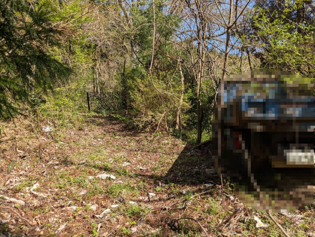 廃墟だ!なんでこんな山の中に?誰か住んでいるのかな?でもここは私有地かもしれないし、勝手にこれ以上入るのはよそう。