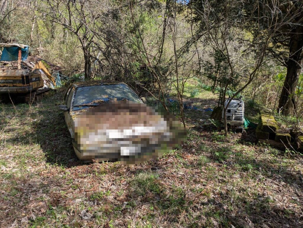 白い廃車のような車が…