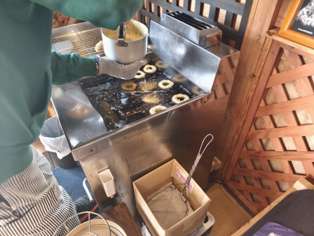 ちょうどドーナツをもう一回揚げようと思っていたところです!もしよかったら揚げたて食べてみます?