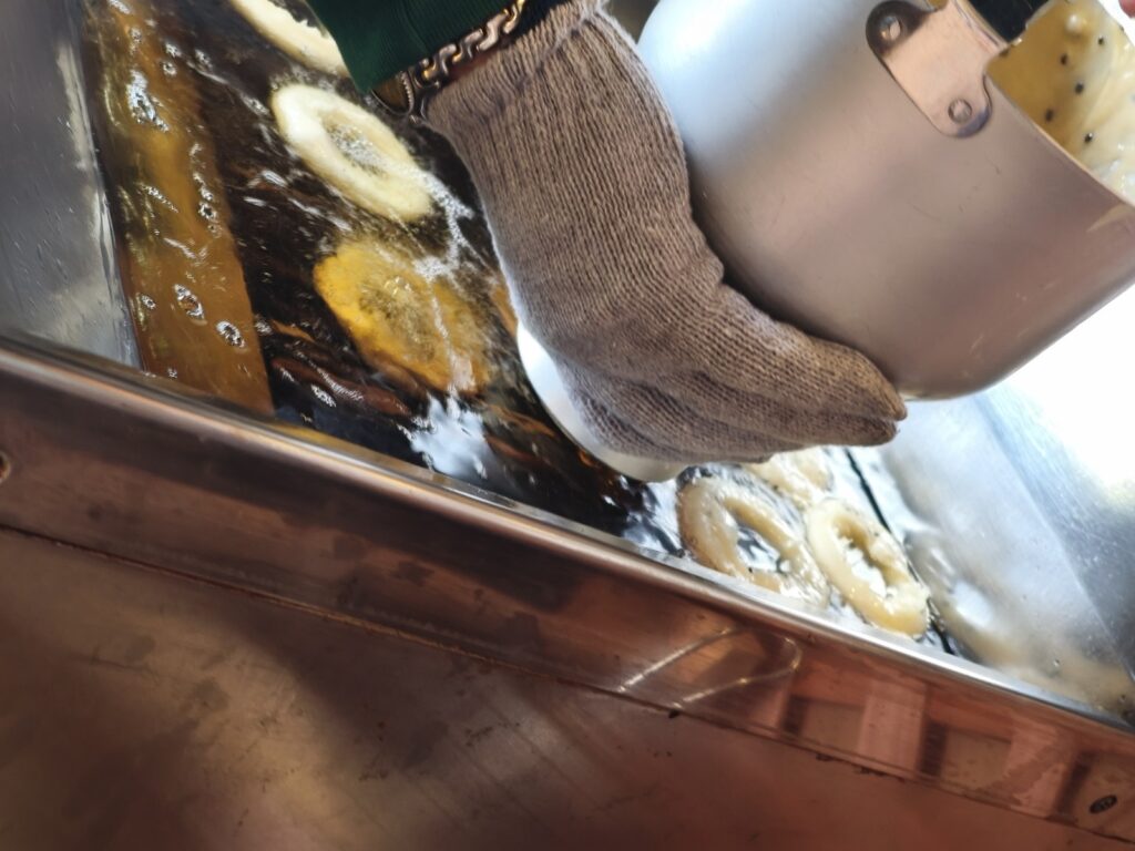 高い菜種油を使っているのですが、実は赤字にならないからくりがあるんです。高い油って酸化しにくいんですよ!おいしい状態をキープしたまま、おいしいドーナツができるというわけですね。