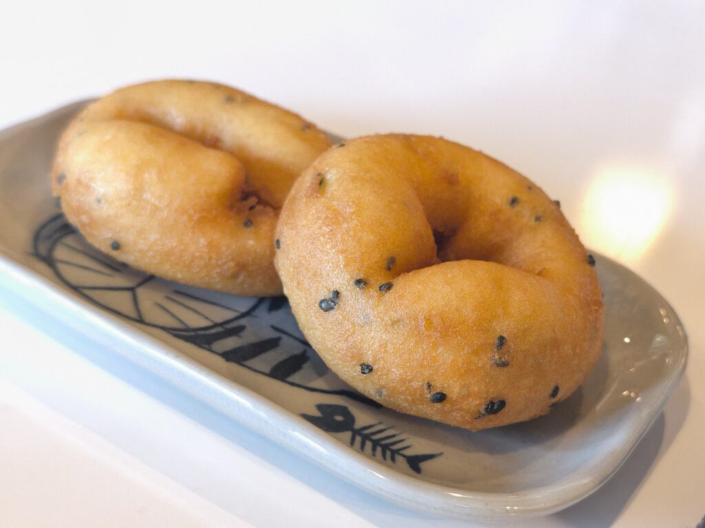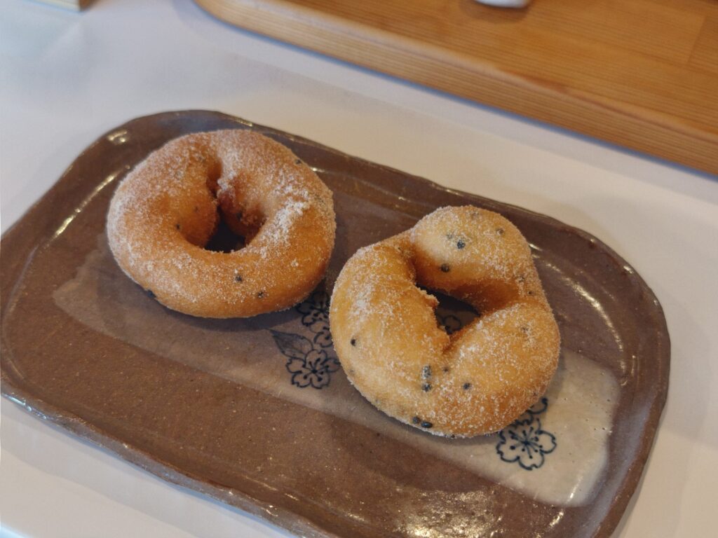 ドーナツに黒ゴマが入っていますが、黒ゴマはランダムで月に一回だけ生地に練りこんでいるんだそう。