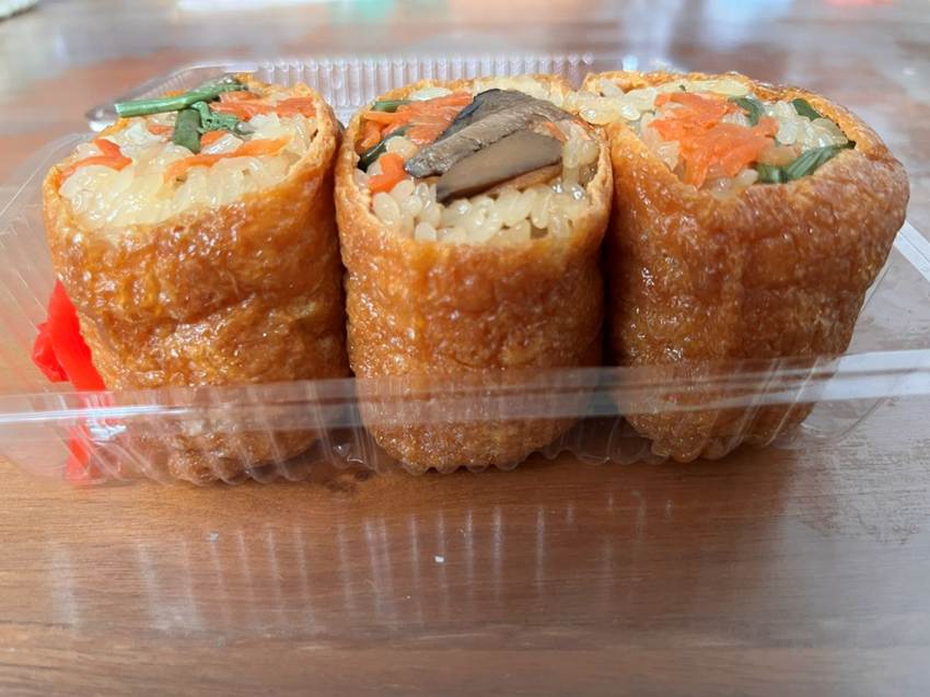 こちらは山菜いなり。横から見たらわかるこの高さ。ボリューム満点です!