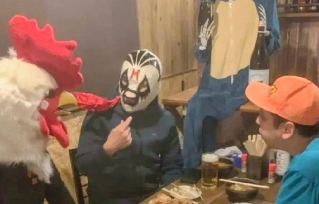 そこにはなぞの鶏の仮面を被った生命体が。