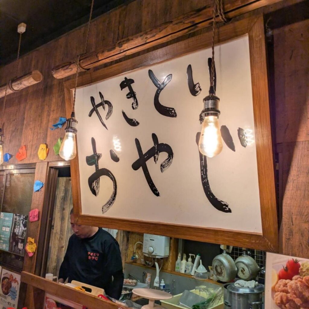 住宅街を進んで行くとひっそりとお店を構える焼き鳥おやじ。